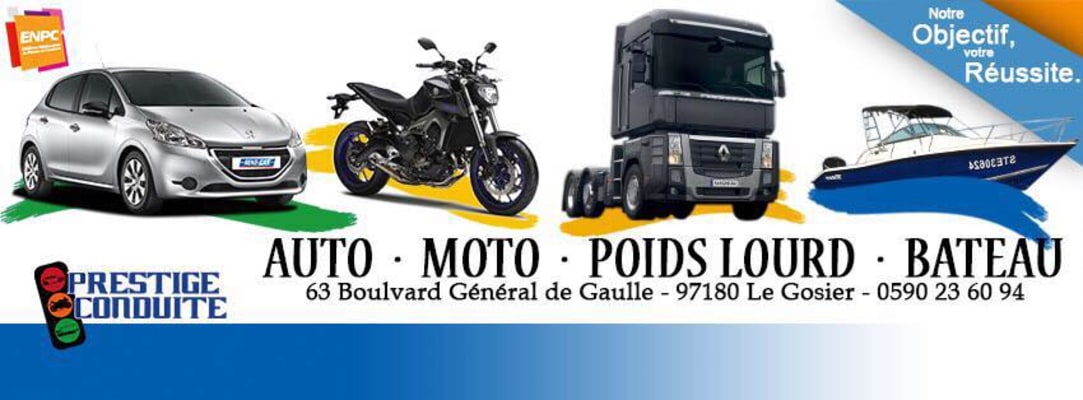 Découvrez l'auto-école Prestige Conduite au Gosier, votre partenaire de confiance pour obtenir votre permis de conduire en Guadeloupe. Des instructeurs qualifiés, une approche pédagogique personnalisée et des taux de réussite élevés font de nous la référence en matière de formation à la conduite. Rejoignez-nous au 63 boulevard du Général de Gaulle pour démarrer votre apprentissage en toute sérénité.
