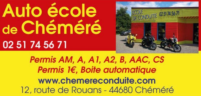 Bienvenue chez Chéméré Conduite, votre auto-école de référence à Chéméré. Nous vous accompagnons avec professionnalisme et bienveillance pour vous aider à obtenir votre permis de conduire en toute confiance. Situés au 12 route de Rouans 44680, notre équipe qualifiée est là pour vous guider vers la réussite. Réservez dès maintenant votre place pour une formation de qualité.